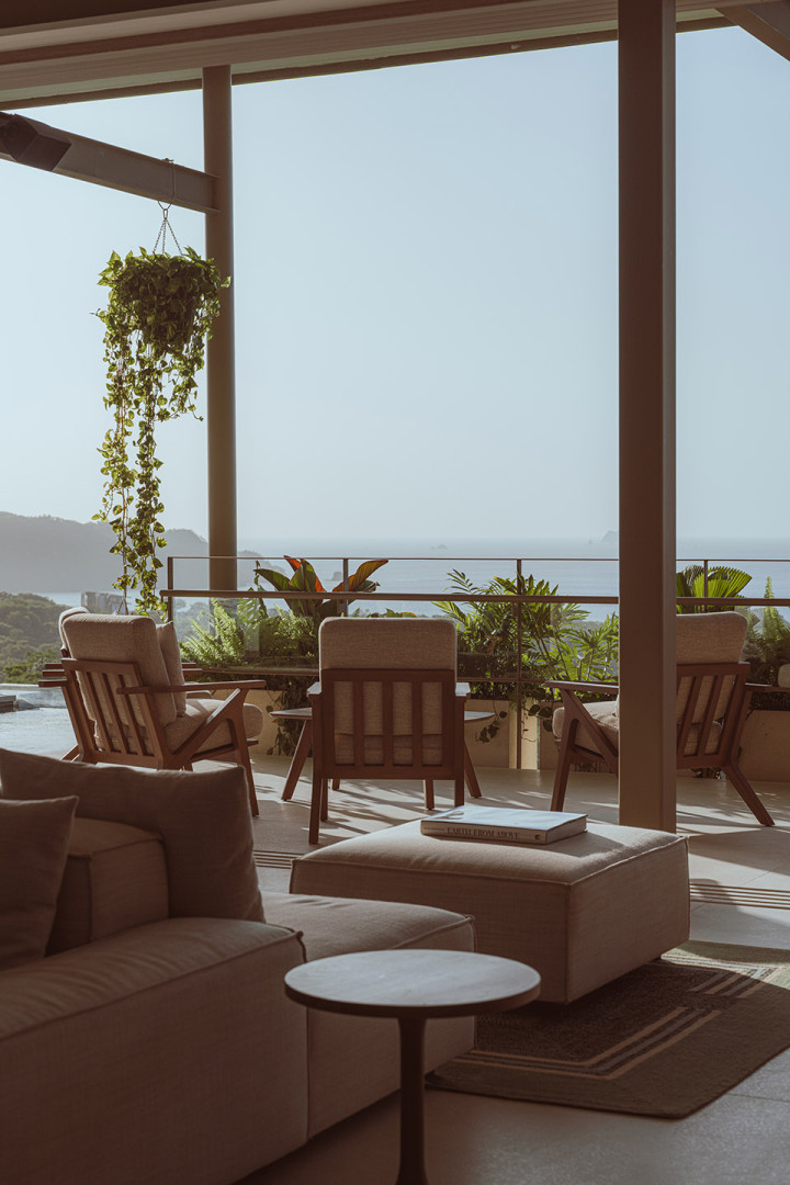 室内空间设计大胆采用了鲜明的表现手法和对比元素,如钴蓝色的扶手椅,反射出海洋与天空的颜色,故意将周围的景观框定在视野之中。黑白瓷砖,呼应了哥斯达黎加传统设计中常见的图案。同时巧妙设置的开口使房子能够自然呼吸,保持全天舒适的温度。